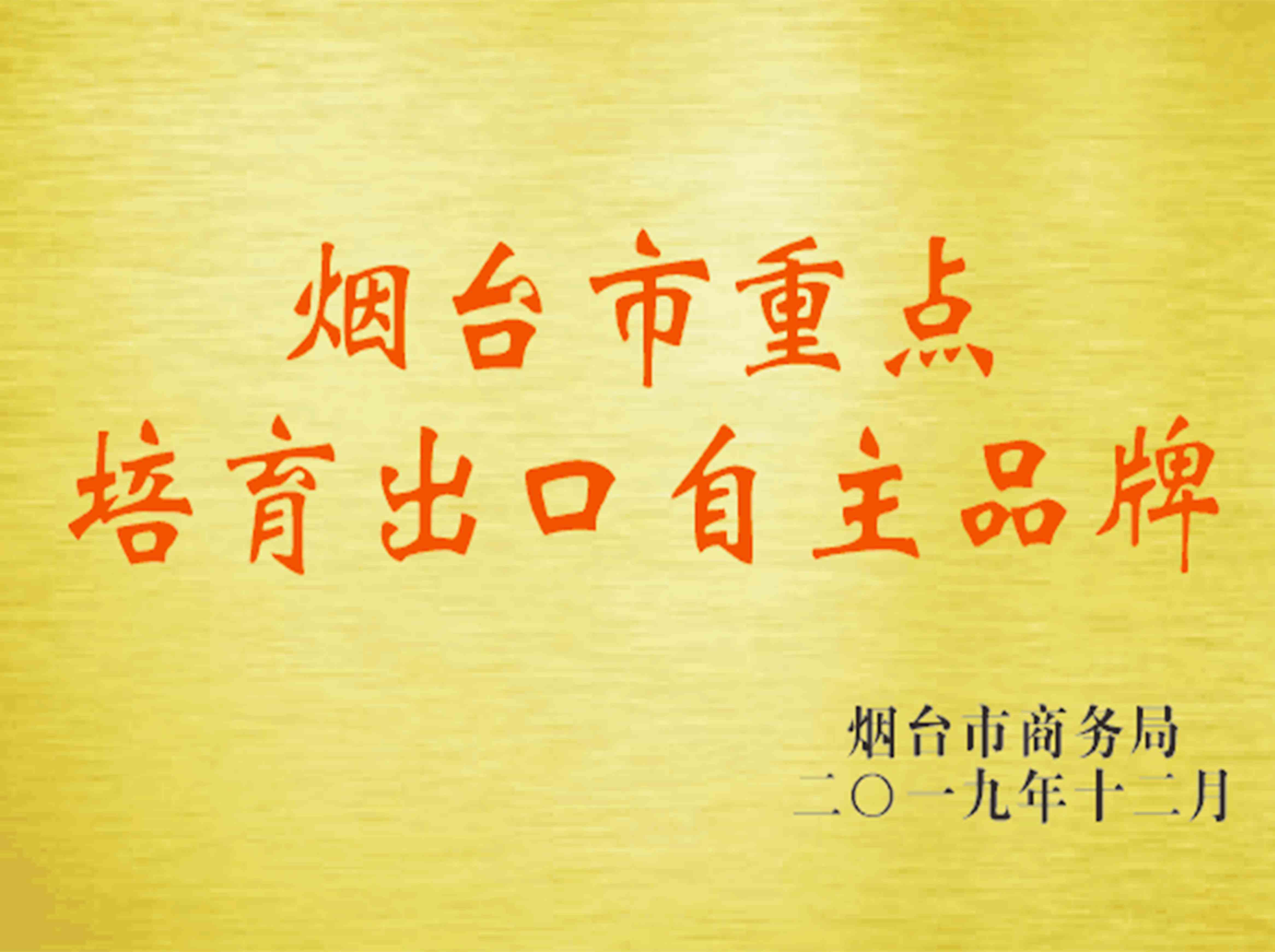 2019年煙臺(tái)市重點(diǎn)培育出口單位。