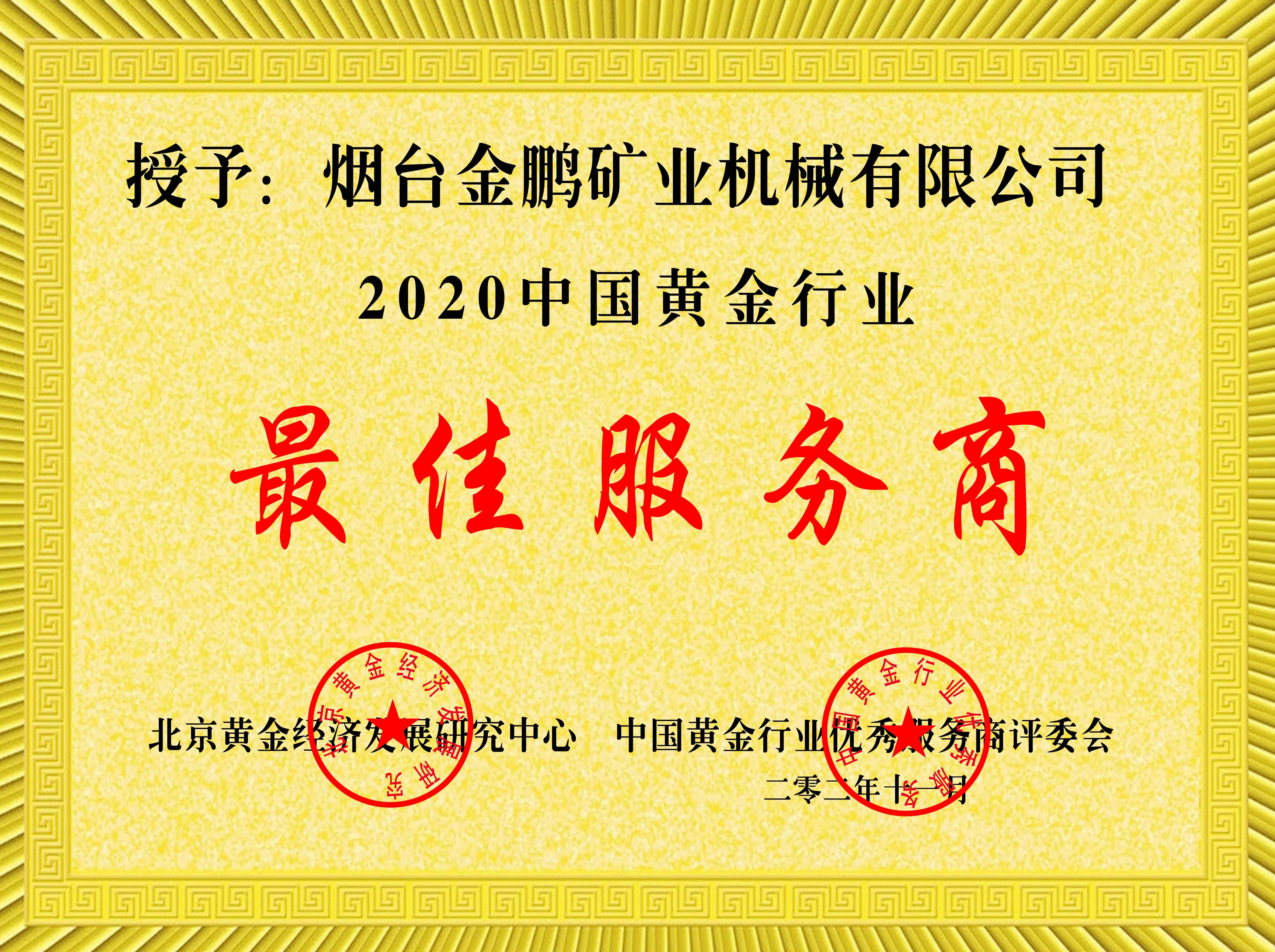 2020年黃金行業(yè)最佳服務(wù)商。