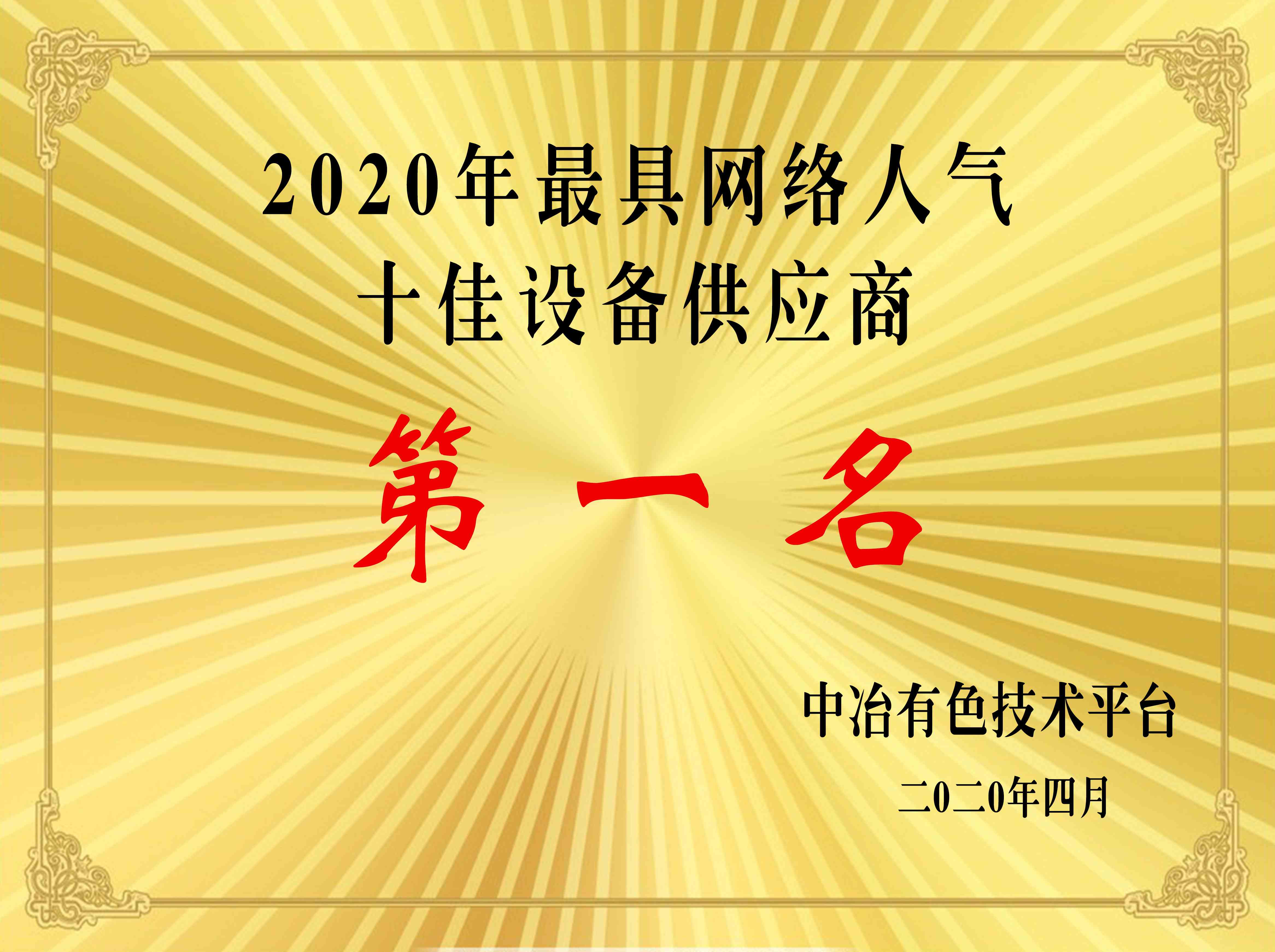 2020年十佳設(shè)備供應(yīng)商第一名。