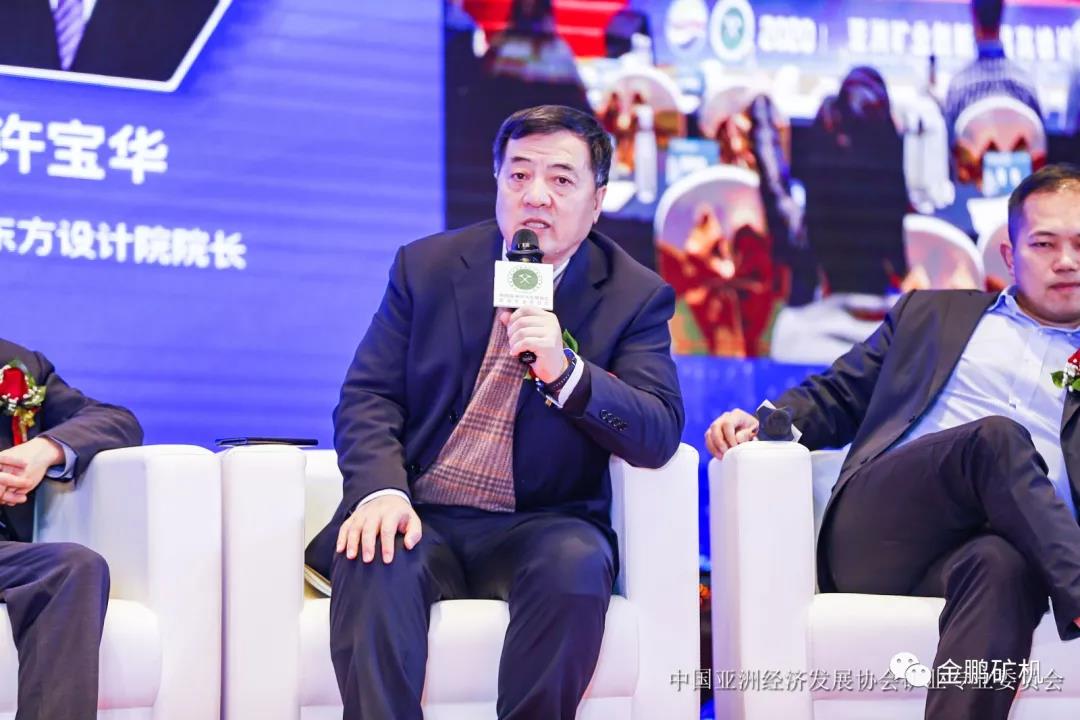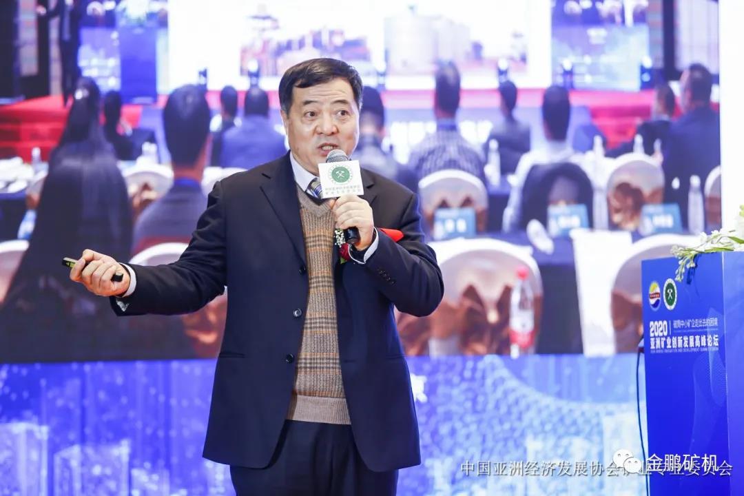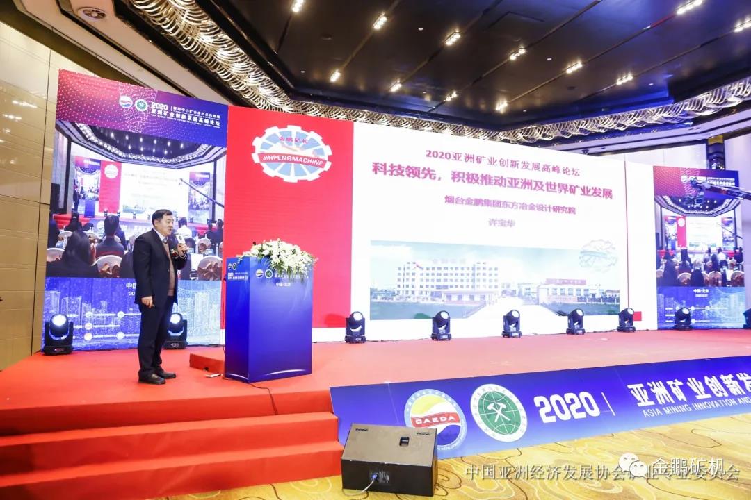 作為亞洲經濟發展協會礦業委員會首屆會員單位,金鵬礦機董事長于建環接受了中國礦業報記者的現場采訪,并與裴榮富院士親切交流和合影,煙臺東方冶金設計院院長許寶華在會上發表了《科技領先,積極推動亞洲及世界礦業發展》的主題報告,許寶華院長結合從業三十多年的設計及現場實踐經驗,為專家學者們及行業同仁們陳述了金鵬礦機在礦山設計及設備方面的實用型創新舉措,這些寶貴的實踐經驗總結得到了現場嘉賓們的交口稱贊。