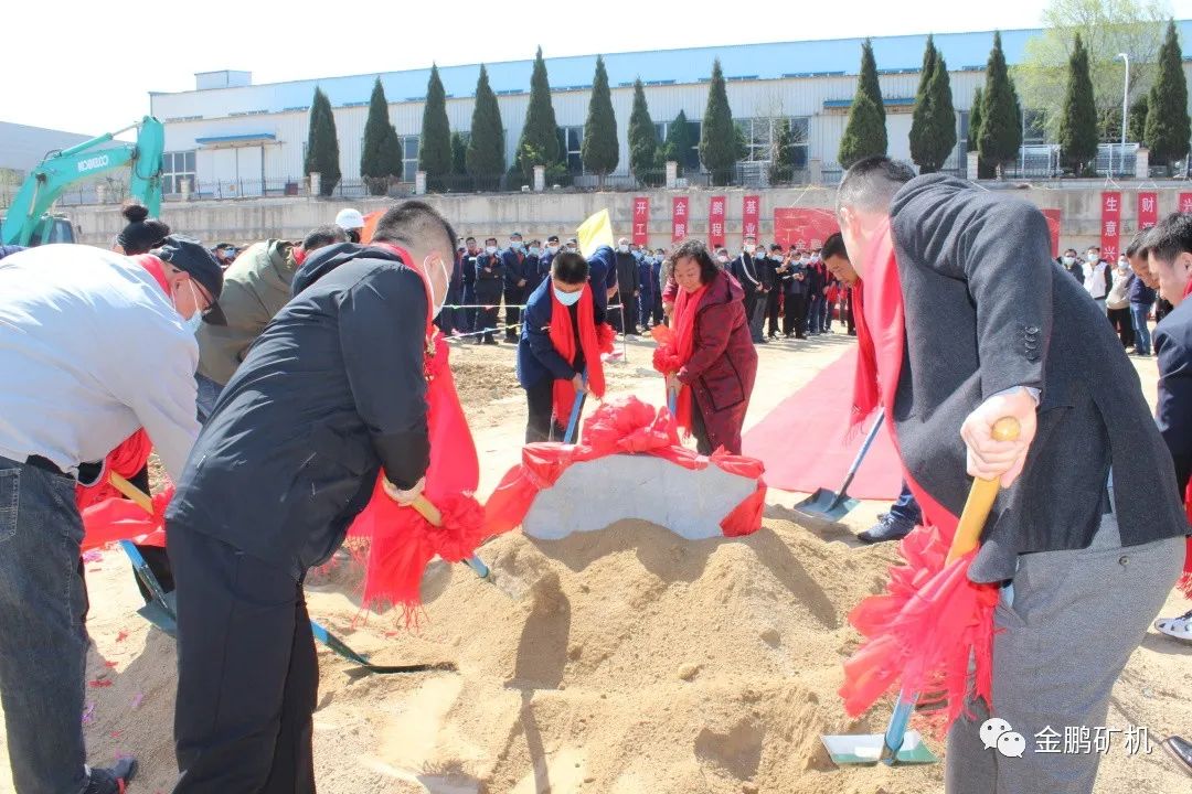 人間四月,不負期待。2022年4月16日上午,煙臺金鵬智能裝備科技有限公司1#廠房開工奠基儀式隆重舉行。煙臺金鵬礦業機械有限公司董事長于建環,總經理許慶硯,山東普萊恩工程設計有限公司劉忠國,元亨工程咨詢集團有限公司蓋淑君,山東廣源集團有限公司總經理管軍,以及各界代表、金鵬員工等數百人參加開工儀式。