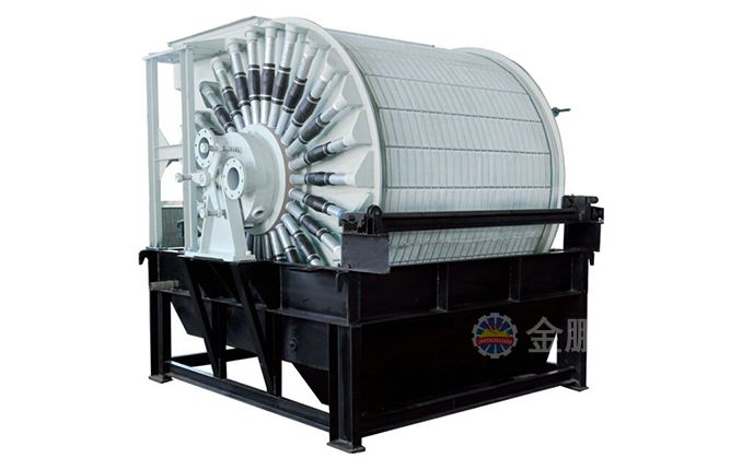 磁濾機的給料槽在上部,由于上部給料,濾餅又在磁場中形成,所以濾餅中精礦按粒度分層現象明顯,并呈放射狀分布。濾餅不但厚而且透氣性好,易于脫水。