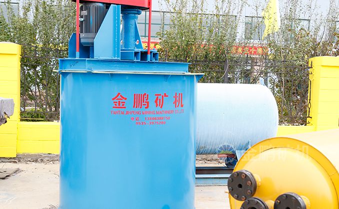 該礦用攪拌桶工作時,在葉輪的旋轉作用下,礦漿和藥劑產生大、小循環(huán)運動,從而使整個槽內的礦漿、藥劑達到均勻混合,混勻的懸浮液由溢流口排除。