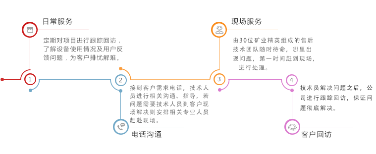 除了制造礦山設(shè)備之外,金鵬集團(tuán)還提供工程咨詢、選礦試驗(yàn)研究、 礦山設(shè)計(jì)、設(shè)備制造、安裝調(diào)試、人員培訓(xùn)、 長(zhǎng)期跟蹤服務(wù)、選廠管理運(yùn)營等一條龍服務(wù),讓客戶全程無憂, 縮短工期,提早收益。